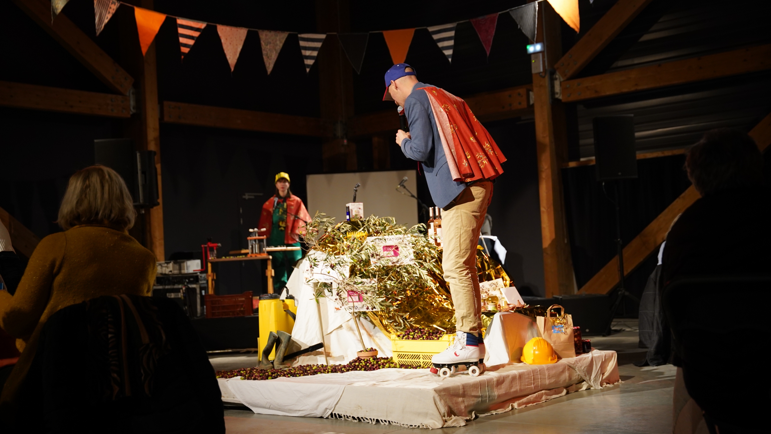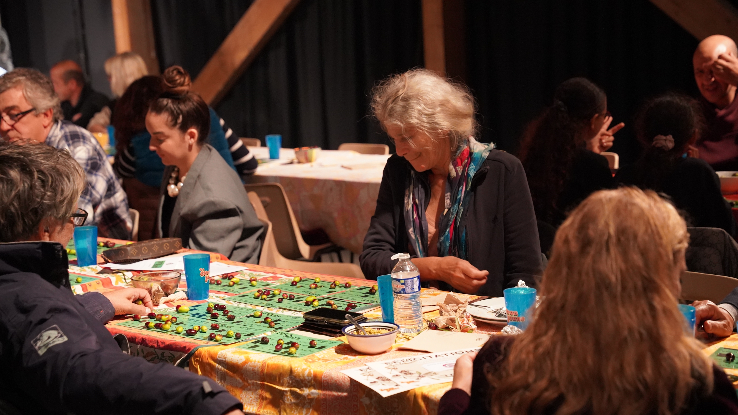 Avec les 20 kilos d’olives récoltées lors de divers balades urbaines quelques jours auparavant ont remplacés les jetons, quand aux cartons ils n’avaient pas leurs numéros habituels mais plutôt l’inscription des éléments chimiques rappelant le tableau de Mendeleiev. Grâce à l’explication des artistes arboricole Thierry Boutonnier, Laury Huard et Eva Habasque il était plus facile de comprendre les éléments essentiels au développement du fruit et les polluant qui le menacent, le tout en remportant de nombreux lots !
