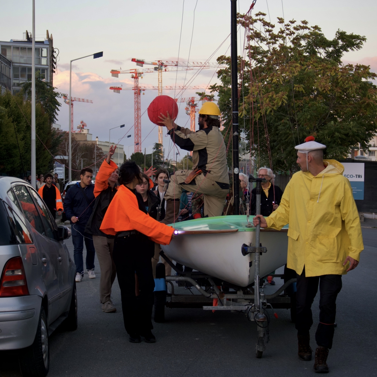Parade avec les arbres de Vive les groues en passant par la Terrasse, pour terminer à l’Université. Déambulations dans une parade joyeuse sur le thème des arbres.